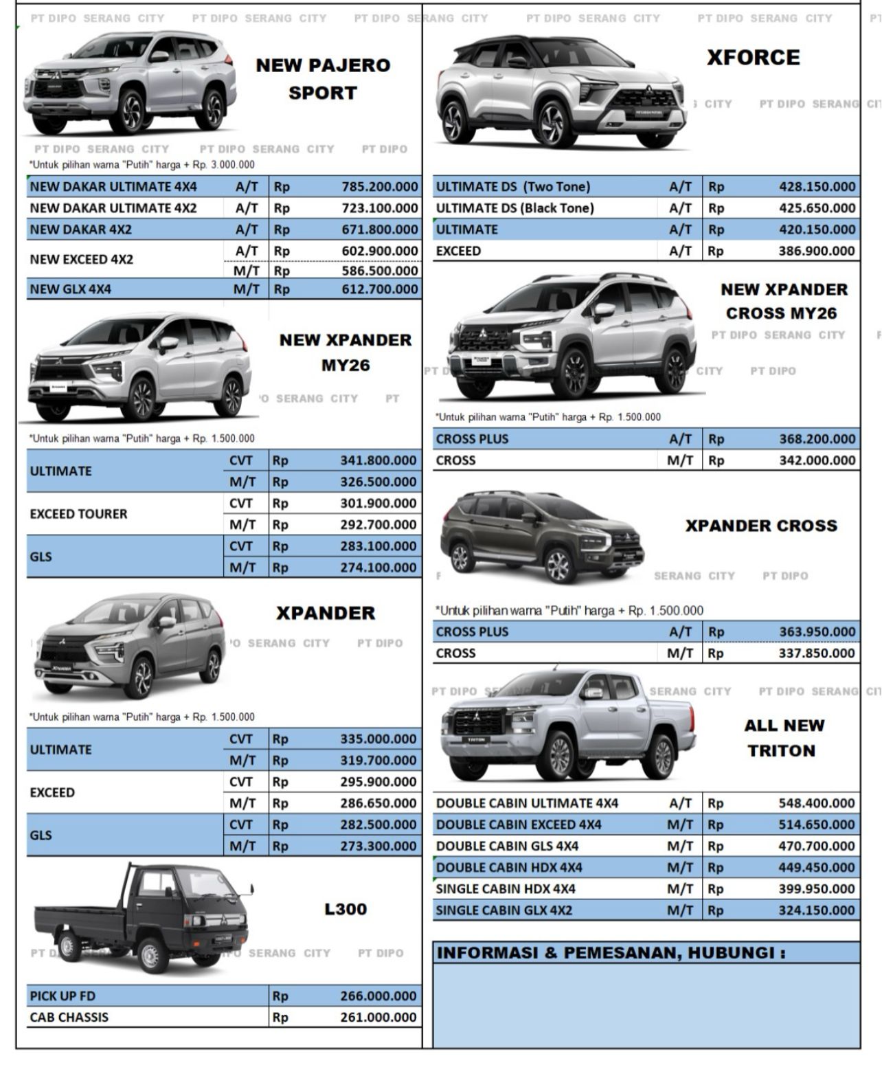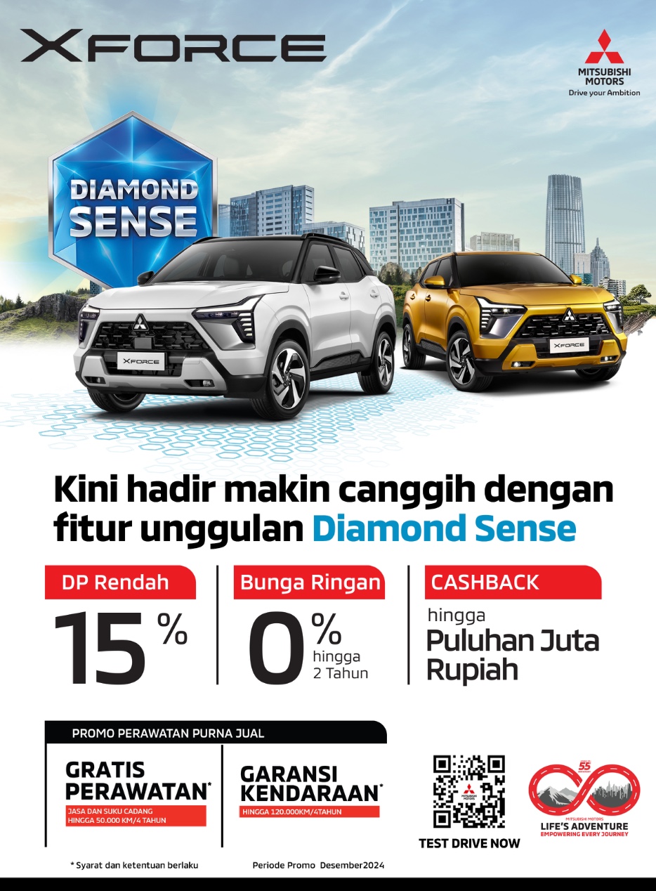 Mitsubishi XForce adalah SUV kompak terbaru yang dirancang untuk memberikan pengalaman berkendara yang menyenangkan di perkotaan dan sekitarnya. Dengan desain yang atraktif, fitur-fitur canggih, serta kabin yang lapang dan nyaman, XForce adalah pilihan ideal bagi Anda yang berjiwa muda dan dinamis. Nikmati performa yang responsif dan efisiensi bahan bakar yang optimal.