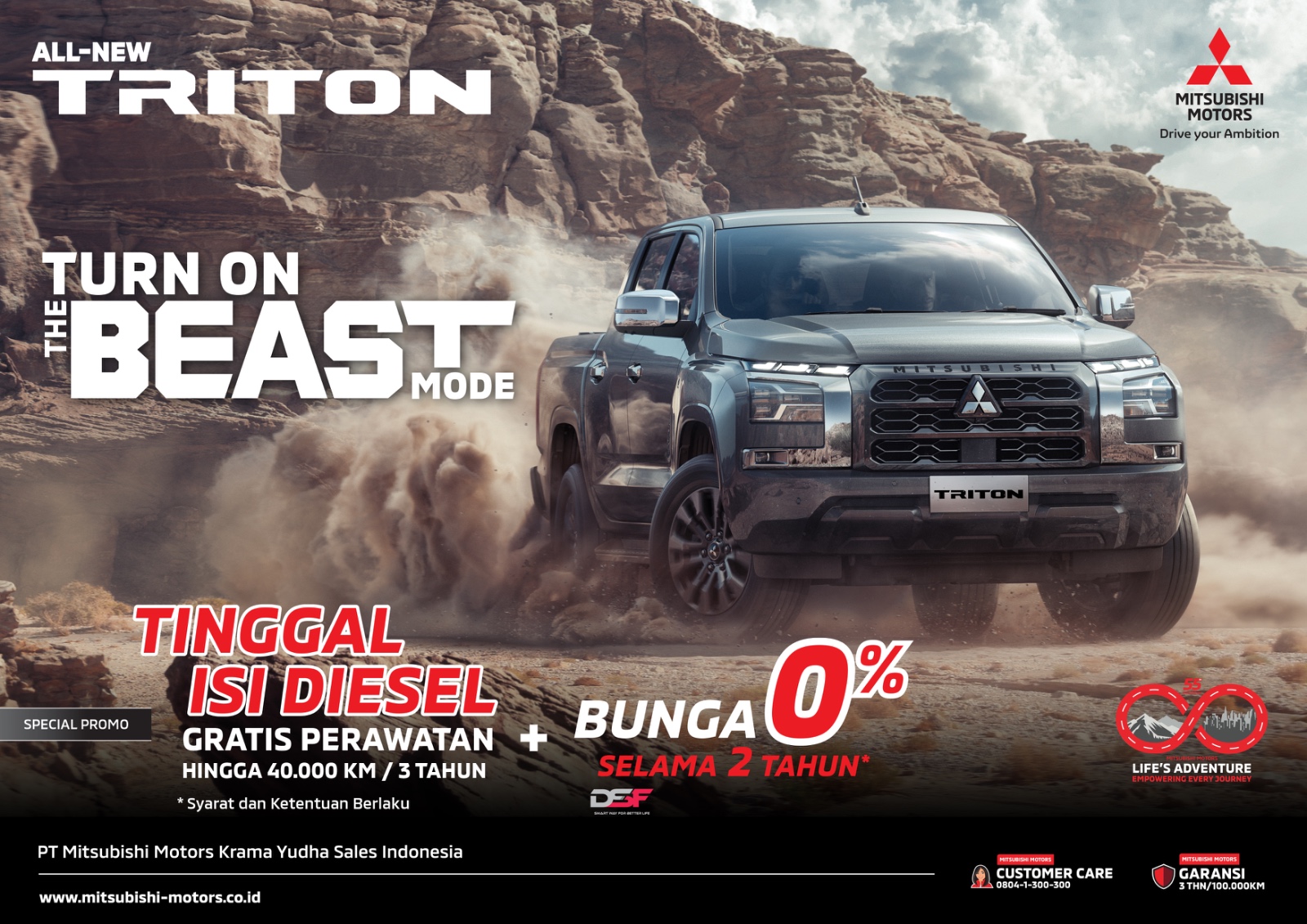Mitsubishi Triton adalah double cabin yang tangguh dan serbaguna. Ditenagai mesin diesel yang bertenaga dan dilengkapi fitur 4×4, Triton siap menemani Anda bekerja keras di medan berat maupun berpetualang di akhir pekan. Hadir dengan desain yang modern dan kokoh, interior yang nyaman, serta fitur keselamatan yang lengkap.